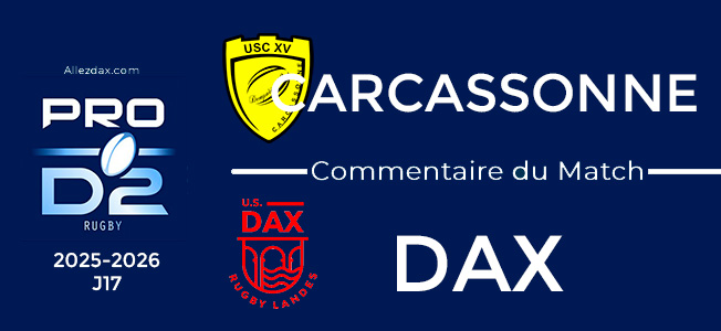 Boostés par une victoire face au S.U. Agen à Boyau pour le 1er match de l’année 2026, les Dacquois se déplaçaient en terres carcassonnaises pour un match de mal classés « importantissime » pour le maintien en ProD2. Le staff opérait quelques changements, mais l’équipe gardait une ossature de titulaires afin de tenter de décrocher la victoire et s’éloigner de la zone rouge.
