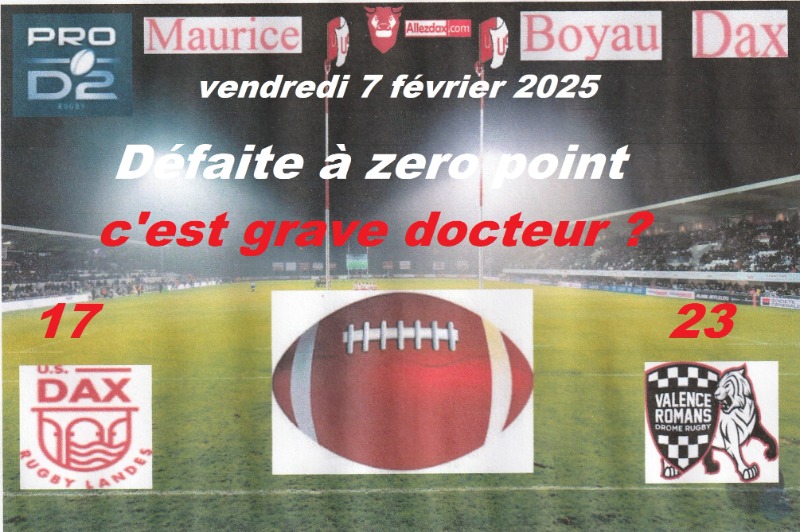 Ce soir on a retrouvé des valeurs de combat mais ca ne suffit pas...Trop d'indiscipline qui nous coute cher...On savait que cette saison serait difficile, elle le sera jusqu'au bout...Allez dax