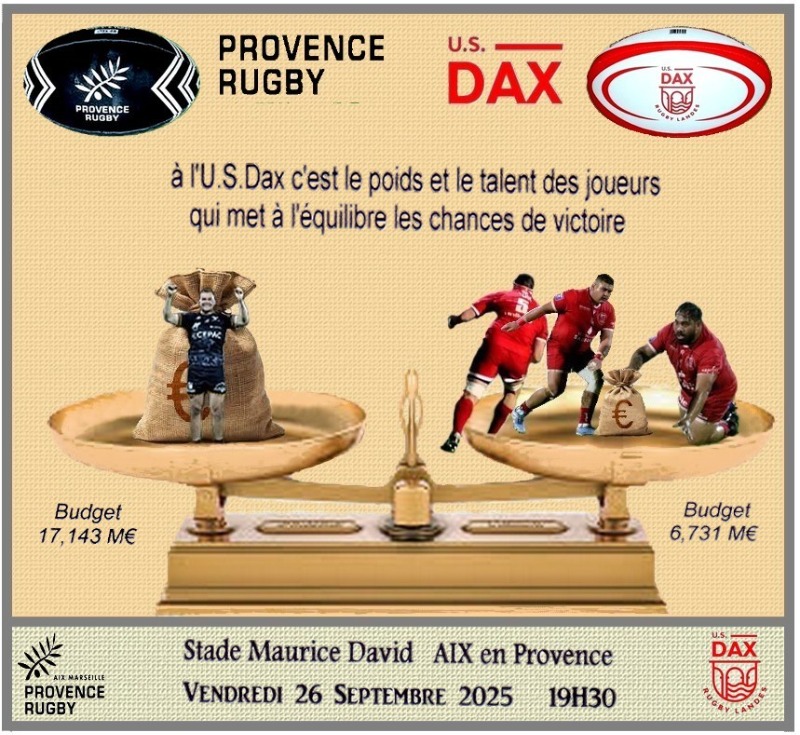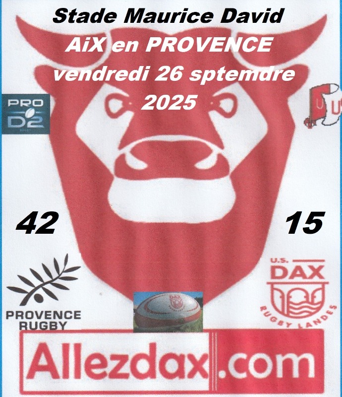 Provence Rugby / Dax ProD2 J/5 vendredi 26 septembre 2025 19h30