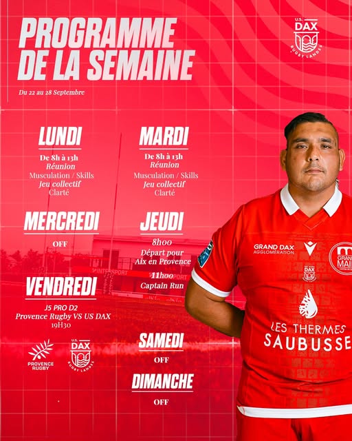 Le secteur de la troisième ligne reste encore fortement impacté chez les Aixois. Après Charly Gambini, blessé, et Guillaume Piazzoli, suspendu, c’est au tour du capitaine Teimana Harrison d’avoir des pépins physiques. Ce dernier sera absent encore contre Dax, ressentant toujours une gêne derrière une cuisse. Autre absence, celle de l’ailier Nadir Bouhedjeur. Blessé à un poignet, celui-ci ne sera pas dans le groupe mais pourrait revenir dès vendredi prochain face à Grenoble. De son côté, Mathias Colombet est encore gêné par une douleur à un pied.