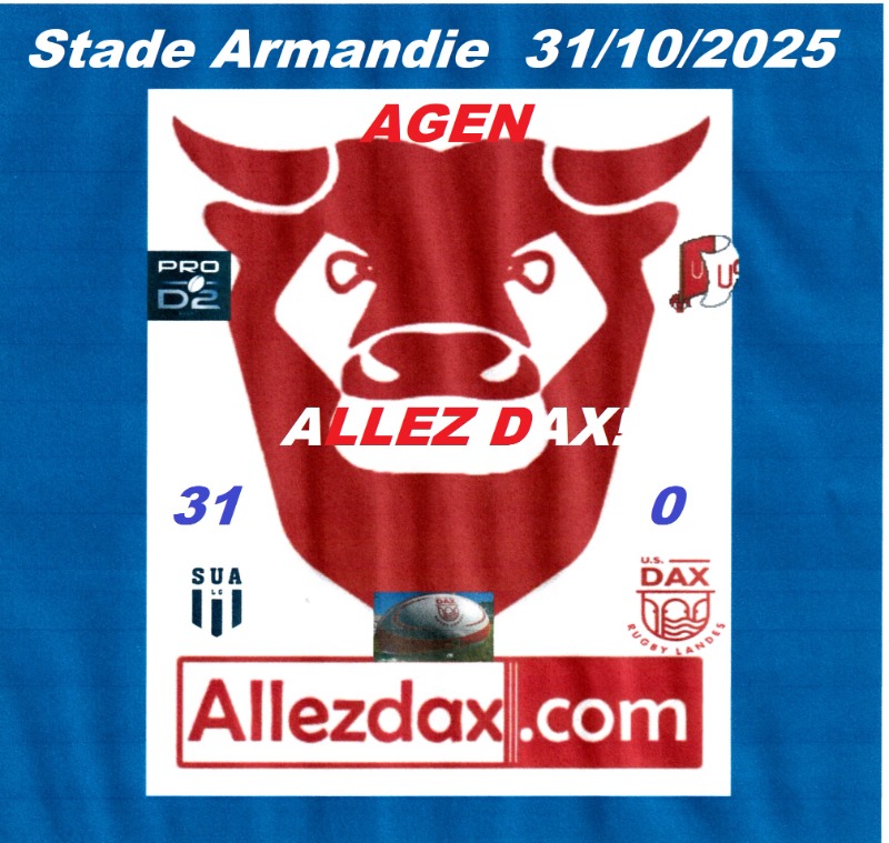 Agen-Dax ProD2 J/9 vendredi 31 Octobre 2025 19h30