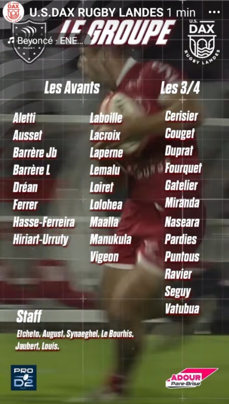 Dominique à Dax on t'oublies pas. ALLEZ DAX !!!