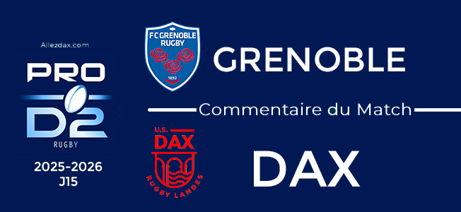 Après l'épisode extra-sportif qui vient d'assommer le Club historique DACQUOIS nous n'avions aucune certitude sur l'état des troupes qui allaient rencontrer GRENOBLE ce soir au Stade des Alpes. L'impact de points perdus une seconde fois sur tapis vert va t-il être de trop pour les guerriers Rouge et Blanc admirables de combativité et de solidarité au cours de