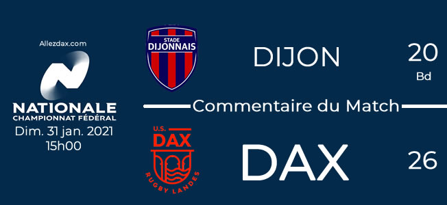 NATIONAL - 2020/2021 J16 : Dijon - Dax : Commentaire du match