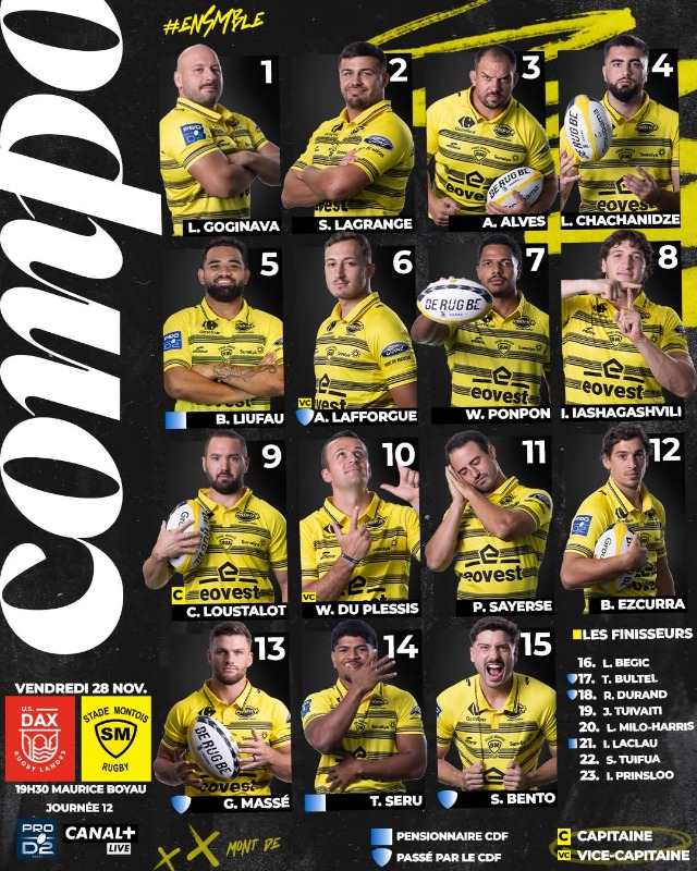 Dax-Mont-de-Marsan ProD2 J/12 vendredi 28 novembre 2025 19h30 |