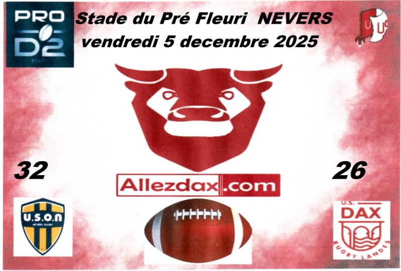 Nevers-Dax ProD2 J/13 vendredi 5 décembre 2025 19 H 30 |