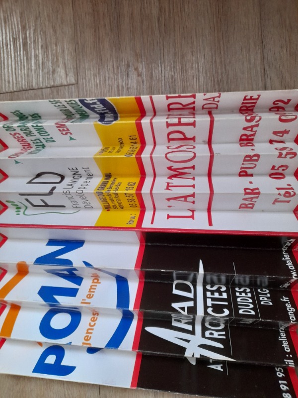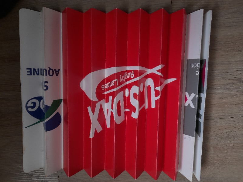 A une époque nous avions une distribution de cartons en accordéon ( je viens d'en retrouver un) avec une face aux couleurs du club et sur l'autre face des pubs.