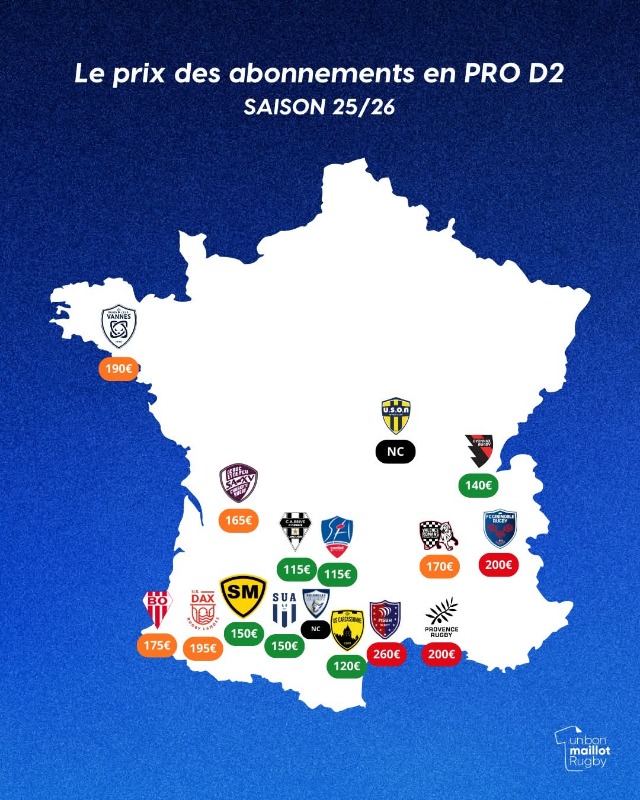 Plus 5 euros pour les places au stade pour la réception de mont de marsan et biarritz...