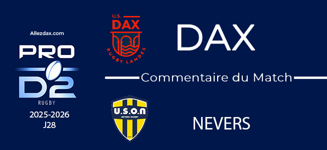 Le public venu nombreux (6 164 Spectateurs) avait répondu aux demandes de soutien du Capitaine J.B. BARRERE et du Coach Vincent ETCHETO qui considérait que DAX allait jouer ce soir sa « finale » à Maurice Boyau et c'est « finale gagnée » pour DAX qui marque la bagatelle de 5 essais et n'en concède qu'un seul face à NEVERS venu dans les Landes en forme ascendante avec l' intention d'y faire un bon résultat.
